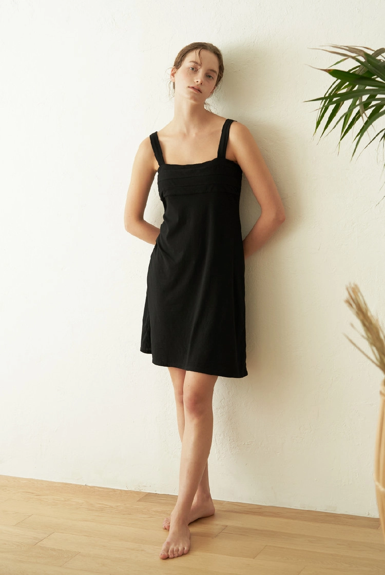 -  저자극의 부드러운 봉제선을 적용하여 피부에 닿는 면의 부드러운 촉감이 장점인 홈웨어 원피스입니다.